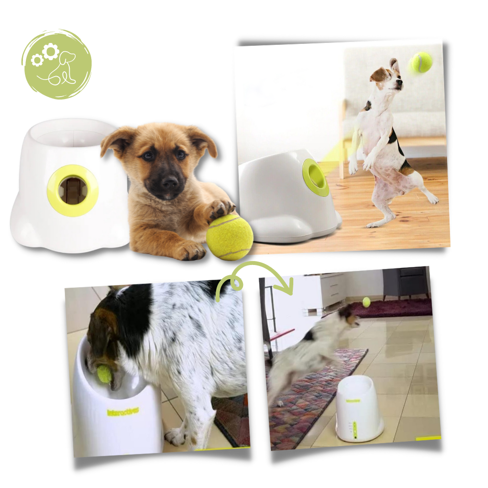 It uses mini tennis balls designed specifically for small to medium dogs.