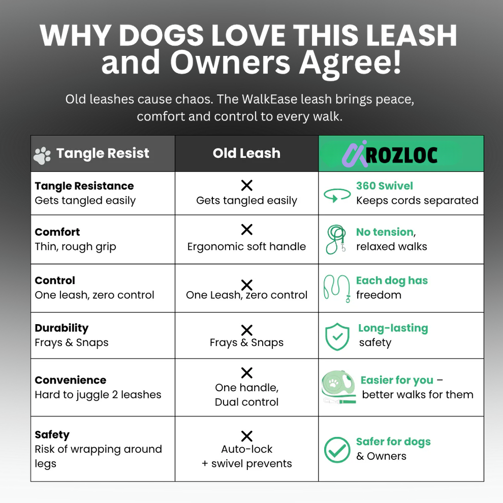 ๐ 360ยฐ Swivel No-Tangle โ Each leash rotates independently to prevent twisting and tangling.